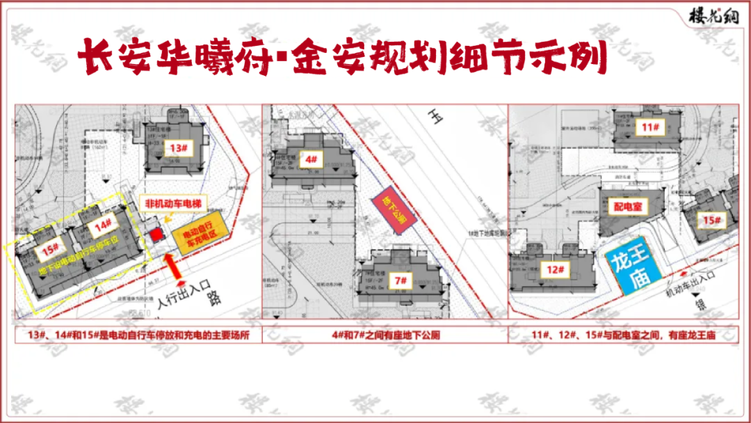 和长安华曦府相比,金安有三点硬伤:紧邻高压线、车位配比不足、紧挨公共厕所。