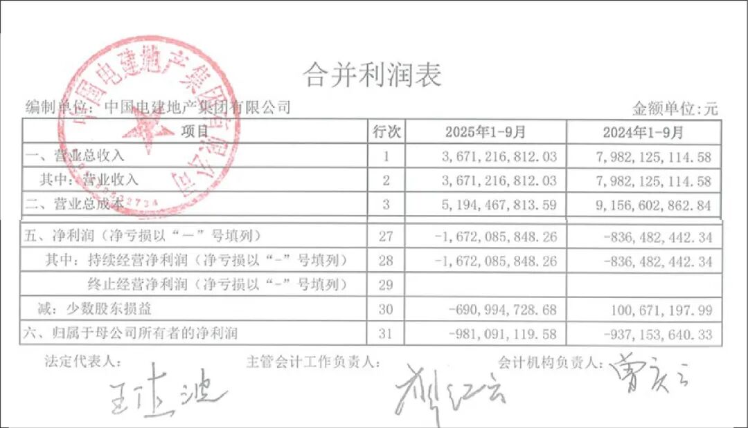 就在金安亮相前夕,电建地产发布了2025年3季度财务报表。