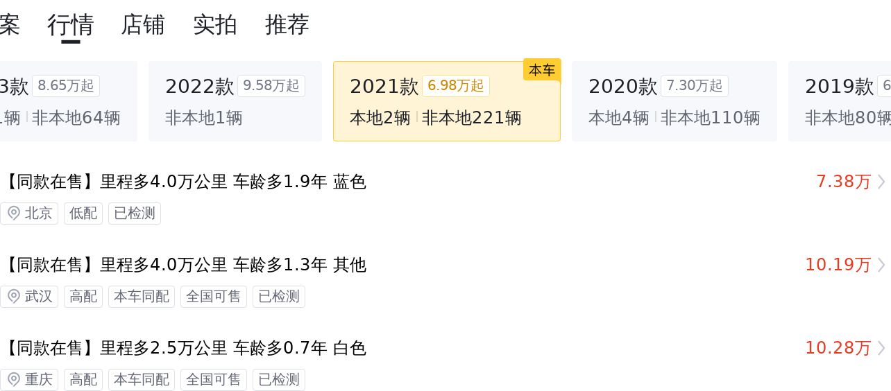 综上所述的新车含税价、用车成本、市场行情、优势分析、同款比价等数据仅供参考。在配置部分,因为二手车非标品,车辆可能会存在配置改装的情况,具体车况信息需要线下结合车辆实际情况进行综合参考。