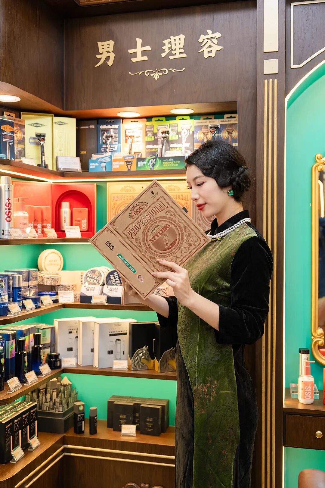 过道的另一边,一处老式男士理容「店」带我们看到了那个时代男性对美的关注。