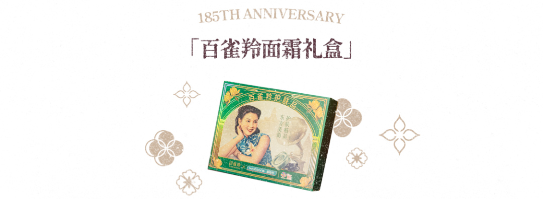 为献礼而生的面霜礼盒,至为吸睛的莫过于1931年复刻款小蓝罐,及百雀羚玉龄琮光精华霜。