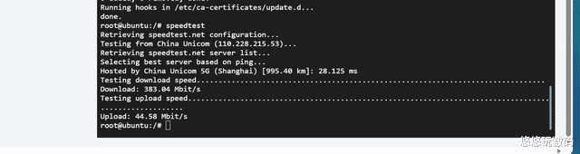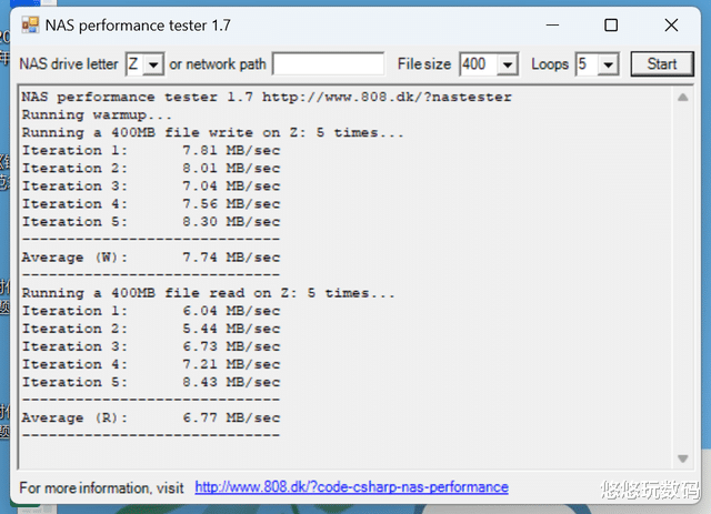 在5Gbps网关口连接下speedtest测试网络延迟为28.125ms,下载速度为383.04Mb/s,上传速度为44.58Mb/s。使用NAS performance tester测试网络下平均读写速度为6.77MB/s,亲测在局域网内上传1G文件只需不到2min,与一般的USB2.0接口传输速度相当。