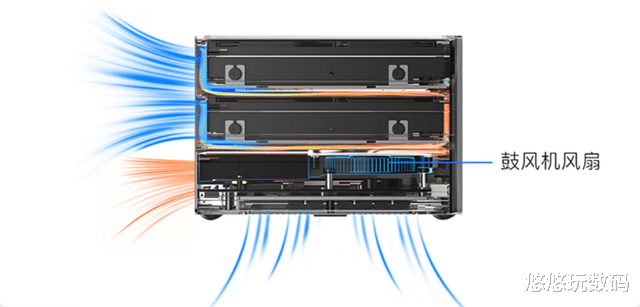 三、散热与噪音:小机身大能量,表现超出预期对于小体积多盘位设备,散热和噪音是关键痛点,零刻ME Pro的表现让人惊喜。 散热系统采用“鼓风机风扇+双热管+定向贯穿式风道”设计,冷空气从顶部硬盘舱进入,经过主板和硬盘散热后从背部排出,整机密封性良好,避免漏风影响散热效率 。