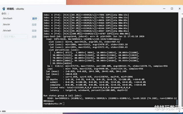 使用fio测试零刻ME Pro的SSD M.2(PCIe 4.0)的平均顺序读取速度为9440.06MB/S,基本接近该SSD最高速度,而且在测试中看到硬盘的温度最高在35℃,也就是说零刻ME Pro的这套组合将储存的读写性能做到了极致。