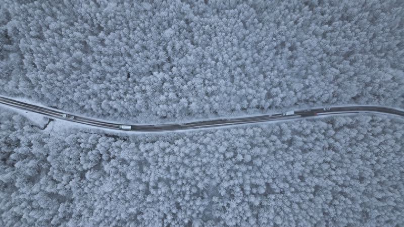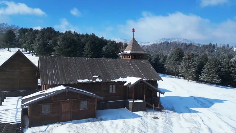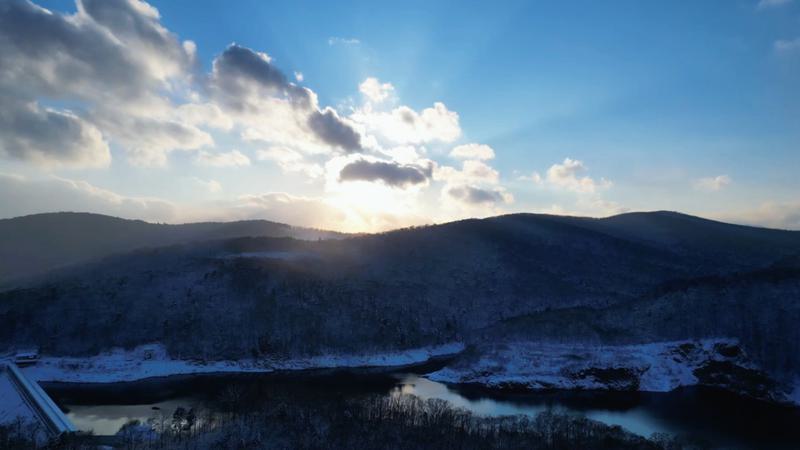 雪落无声,江源的冬日已铺展成北国长卷。老岭山脉覆雪如黛,河床凝冰似玉,八里坡文化园的泥草房、篱笆墙被厚雪裹成天然版画,尽显关东韵味。(王健 钱文波 摄)