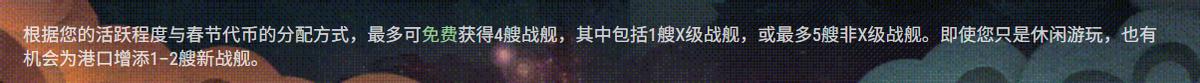 除了施罗德,春节补给箱还藏有农历新年高级补给箱、稀有加成补给箱、永久新春涂装、专属信号旗等丰厚福利,新春代币还能分配到年兽悖论活动的派系进度条,解锁更多资源。如果活跃度拉满,可获得多艘高级战舰!