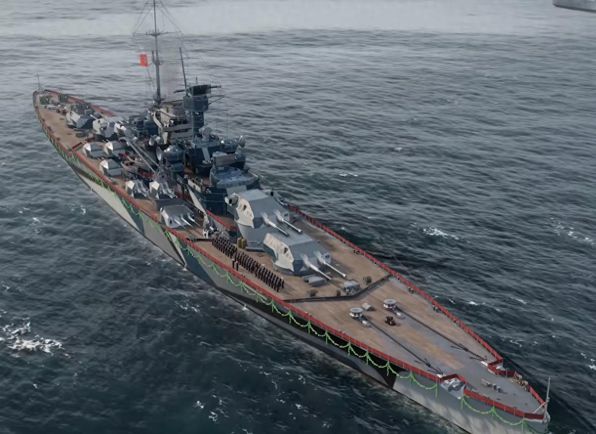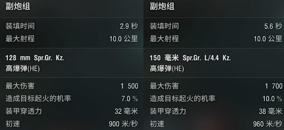 但是它的副炮才是其核心输出手段:20门128mm高平炮+9门150mm副炮组合拥有德系专属1/4穿深HE,可以轻松干碎32mm船壳。调配后射程可达10公里,每分钟投射量最高36W,全副炮配置更能突破42W。优化后的射界让其略微侧身就能火力全开,近距离乱拳压制堪称无解。