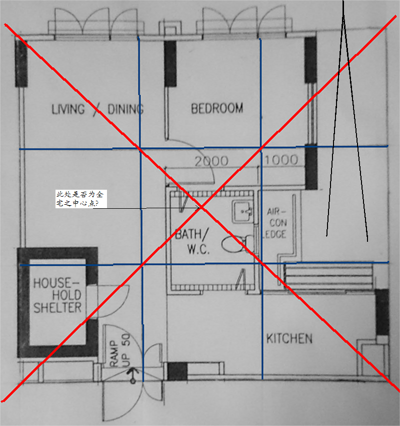 这里为了方便风水小白,一般是先找住宅的中心点,一般采用对角线交叉法,如下图: