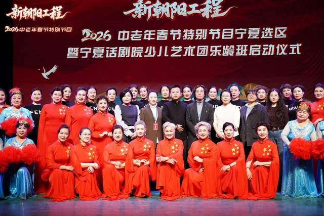 活动现场举行了中老年春晚暨乐龄班开班启动仪式,标志着“新朝阳工程”2026中老年春节特别节目宁夏选区暨宁夏话剧院少儿艺术团乐龄班正式启航。