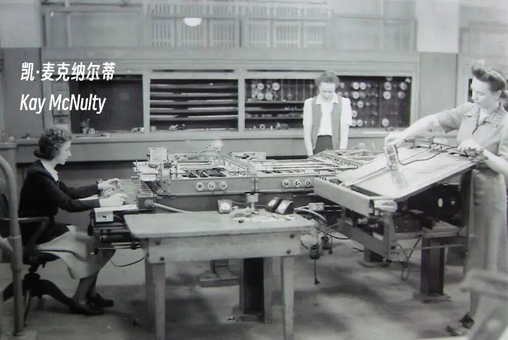 ENIAC最初的程序员团队由6位女性数学家组成。她们从零开始学习这台机器的调试逻辑,利用插板布线和开关设置进行编程。在没有任何编程工具、编程语言或操作系统可供使用的当时,这是一份极具挑战的工作。