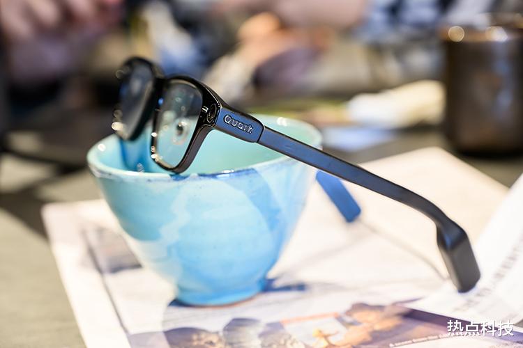 而夸克AI眼镜在外观上,就做足了功夫,首先是整机重量,按官方数据,只有51g,非常地轻,几乎跟很多普通的光学眼镜相当了。最关键的是镜腿,采用了7.5mm超细镜腿设计,加上超薄镜框,使得它在形态上也是非常接近普通眼镜,这就可以让用户佩戴起来不会太过突兀。