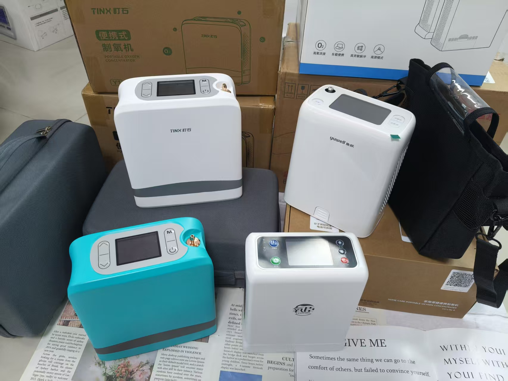 ( 下图是测试使用过的部分制氧机产品)