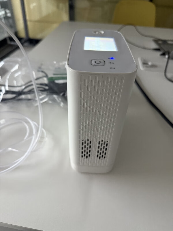 它的这个制氧机型号是欧姆龙的,配件挺全的,湿化杯装水后不易洒,管子长度够长,坐在沙发上也能拿到吸氧管,还可用。技术层面有三级过滤系统,先滤大颗粒,再用活性炭去味,最后到分子筛制氧,据说说能提升纯净度。不过上周阴天湿度大的时候,偶尔吸到淡水汽味,不确定是不是过滤棉该维护了。