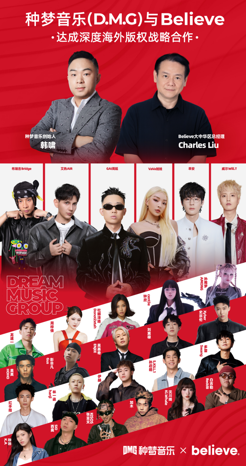 种梦音乐创始人韩啸强调:“依托Believe先进的全球市场洞察能力,我们将更精准地推动优质中文说唱内容走向世界,持续提升华语说唱在全球音乐格局中的影响力与商业价值。”