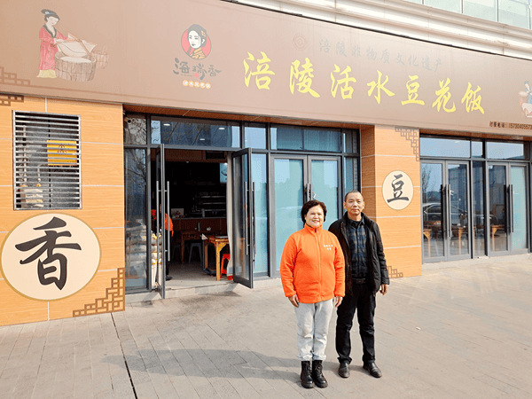 据陈德会介绍,“海瑞香”涪陵活水豆花始终坚守匠心古法,原料考究、工艺严谨:水源取自凌晨四点黄草山下金广农业园古井活水,黄豆精选蔺市、龙潭优质大豆,历经浸泡、磨浆、滤渣、煮制、点卤、压榨六大工序,成品豆花细嫩绵扎、豆香浓郁。门店主营豆花饭、碗碗肥肠、耙蹄花、肝腰合炒、烧白、麻辣鸡、粉蒸排骨、碗碗羊肉等特色菜品,是涪陵本土极具人气的非遗美食。