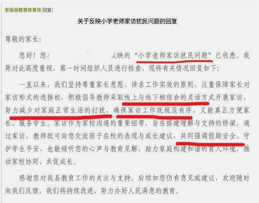 本以为现在都在喊减负,老师怎么也得挨两句批评,结果教育局的回复硬得很:家访很重要,必须去!