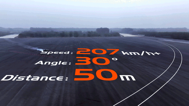 现场成绩为:213.53km/h,后经吉尼斯纪录核实最终成绩为:213.523km/h