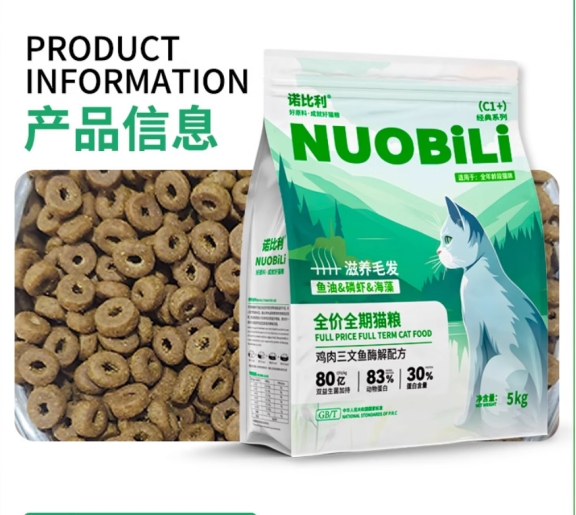 菏泽佳诺佳生产的诺比利猫粮,它强调营养均衡,原料是肉类、谷物和蔬菜的组合,通过配比来满足猫咪日常所需,不同生长阶段都有对应产品。诺比利猫粮怎么样?配料表一目了然,冻鸡肉、鲜鸡肉是主要成分,搭配大米、玉米。营养成分方面,蛋白质30%达标,脂肪12%。