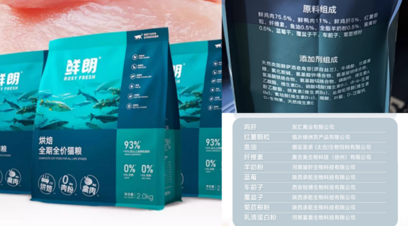 佰萃是乖宝集团旗下的一个子品牌,走的完全是亲民路线。佰萃猫粮怎么样?产品线很精简,就是基础的猫粮和狗粮,靠着大厂的渠道优势铺货很广,价格也便宜,所以在流浪动物救助圈子里有点名气。配料表里,鲜鸡肉占了10%,鸡肉粉也标明了是鲜鸡肉做的。但除此之外,配料里还有鱼粉、牛肉粉,以及玉米、大米、小麦这些谷物。佰萃猫粮怎么样?蛋白质≥30%,脂肪≥11%,属于基础保障水平。毕竟是乖宝自家工厂生产的,品控和原料审核流程应该比较规范。
