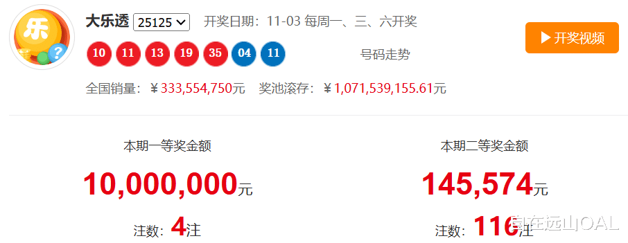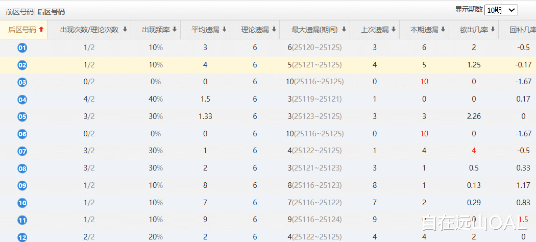 连号信号:“10,11”这组小连号的开出,再次验证了近期前区连号频出的规律(例如124期的26-27,123期的24-25)。这提示我们,在选号时对连号的组合要给予足够重视。