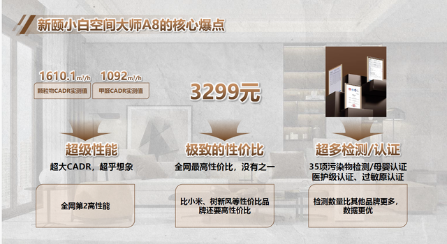 新颐A8的核心优势,在于跳出“非此即彼”的净化误区——强效不扰眠、覆盖不占地、全面不盲目。它不仅是机器,更是懂生活的“空气管家”,让大空间在享受极速净化的同时,不牺牲任何舒适感。对于追求高效、静音、省心的家庭,A8以三千多元的价格兑现旗舰体验,重新定义了空气净化的性价比边界。