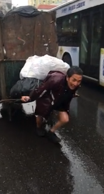 1、真相一:生活的重量,肉眼可见。 车上堆积如山的黑色塑料袋,装的或许是刚收来的废品,或许是赶着送去的小商品。每一个袋子,都是一个具体的生活目标,压弯了他的腰,却没能让他停下。他的“KPI”,写在每一滴砸在雨衣上的汗水里。
