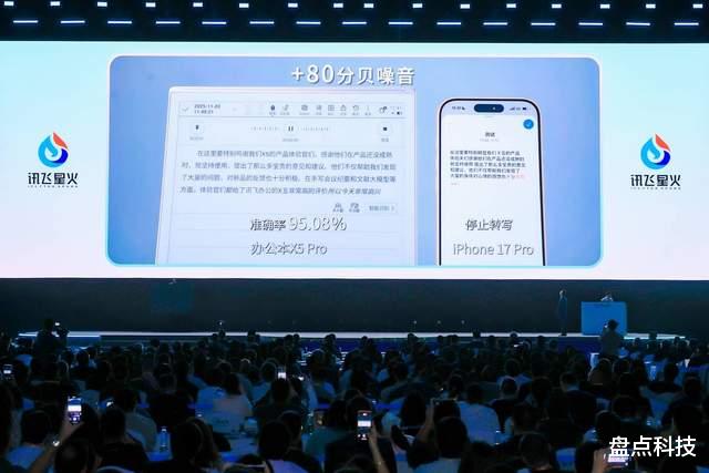 科大讯飞发布了多款融合AI算法的软硬件一体产品。讯飞智能办公本X5在高噪环境下语音识别准确率达95.08%;AI翻译耳机在复杂噪声下识别准确率97.1%。智能座舱音响方案iFLYSOUND已在19家车企量产,出货超100万台。讯飞AI黑板搭载首款圆偏类自然光护眼大屏,视觉疲劳降低50%。