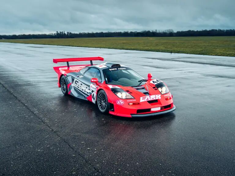 即将上拍的这台底盘编号 27R,是 10 台长尾版中的倒数第二台,也是 Longtail 家族中第一台下场比赛并拿下冠军的历史名车。它最初交付给伦敦金融家大卫·莫里森,代表 Parabolica 车队出战 1997 年英国 GT 揭幕战,车手盖瑞·艾尔斯与克里斯·古德温直接以碾压姿态夺冠,让长尾版 F1 GTR 在首秀就拿下胜利,写下传奇开篇。随后,27R 被借给日本 Lark 车队参加勒芒 24 小时,虽然未能完赛,但依旧留下了浓墨重彩的一笔。