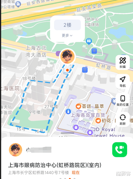 ▲拿个去医院看病的定位截图,在上海很多家长都会在假期带孩子去这家医院看眼睛,大部分专家都在2楼,定位很准。这款手表支持全天候多场景多维度高精准定位守护,有3D楼层定位3.0(新增智能锁楼算法),还有气压计。
