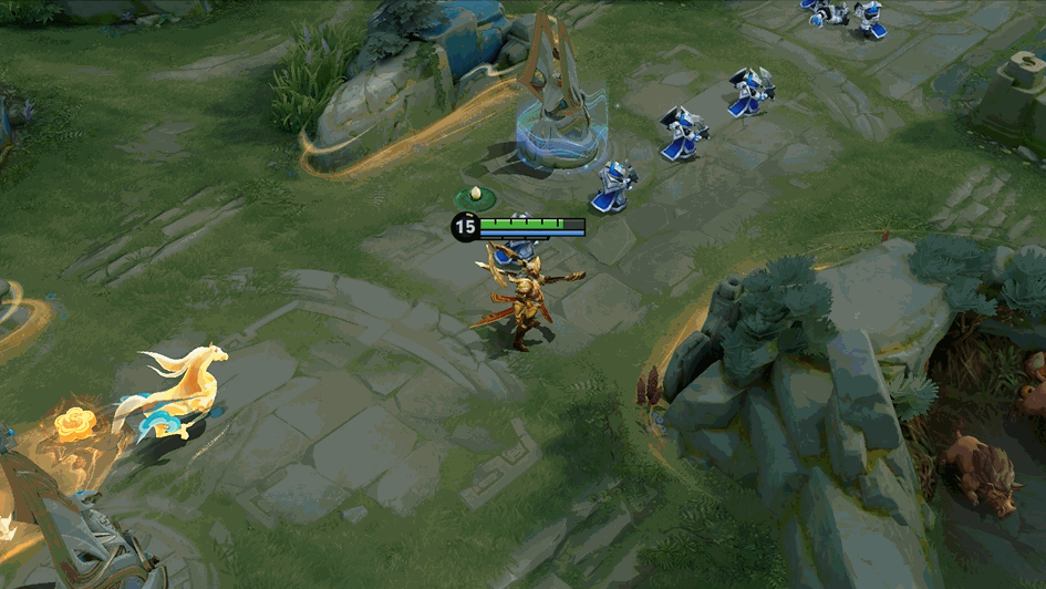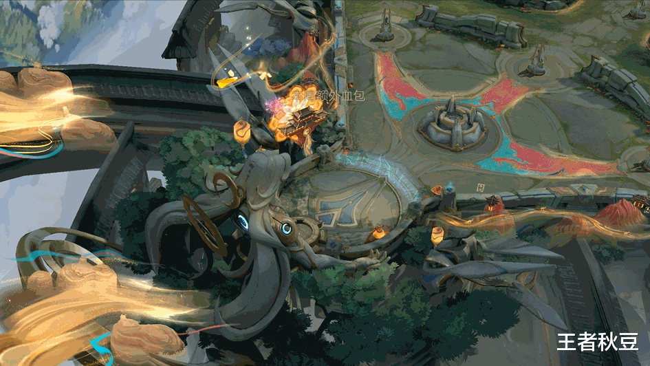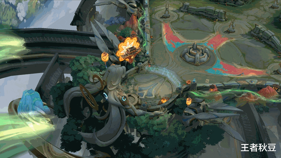 丝绸之路·拨云的出场动画是绿色特效,野区野区会进行小幅地形变化,受到英雄攻击时会获得额外护盾庇护。如下图展示,三处地形都有所变化。