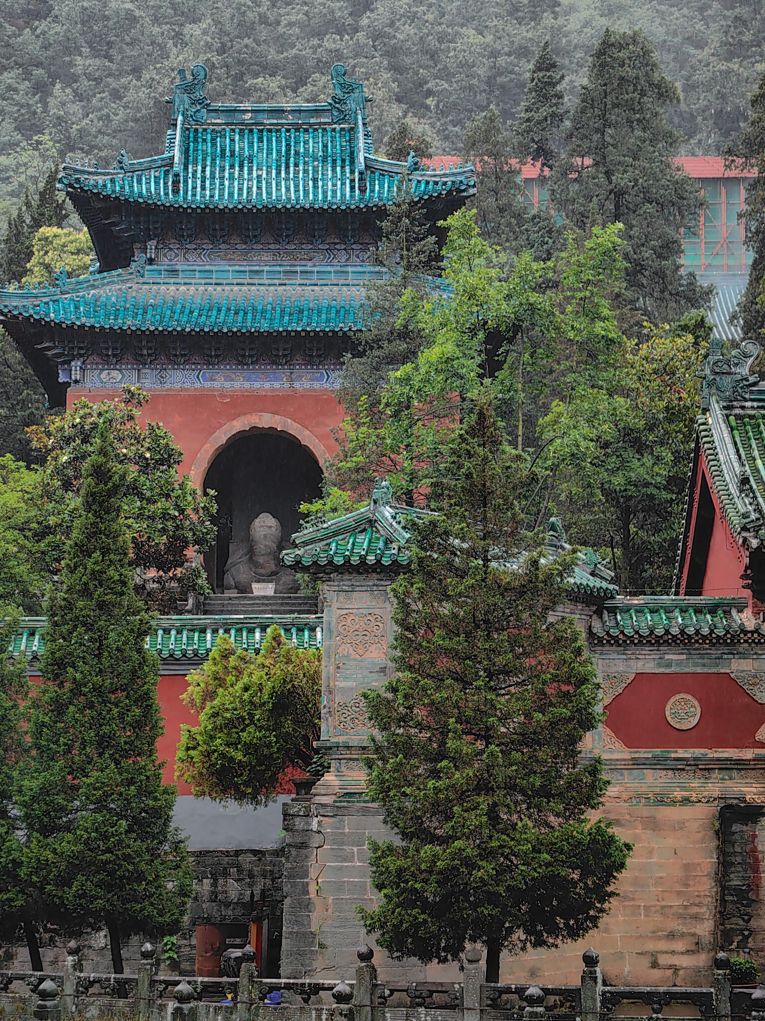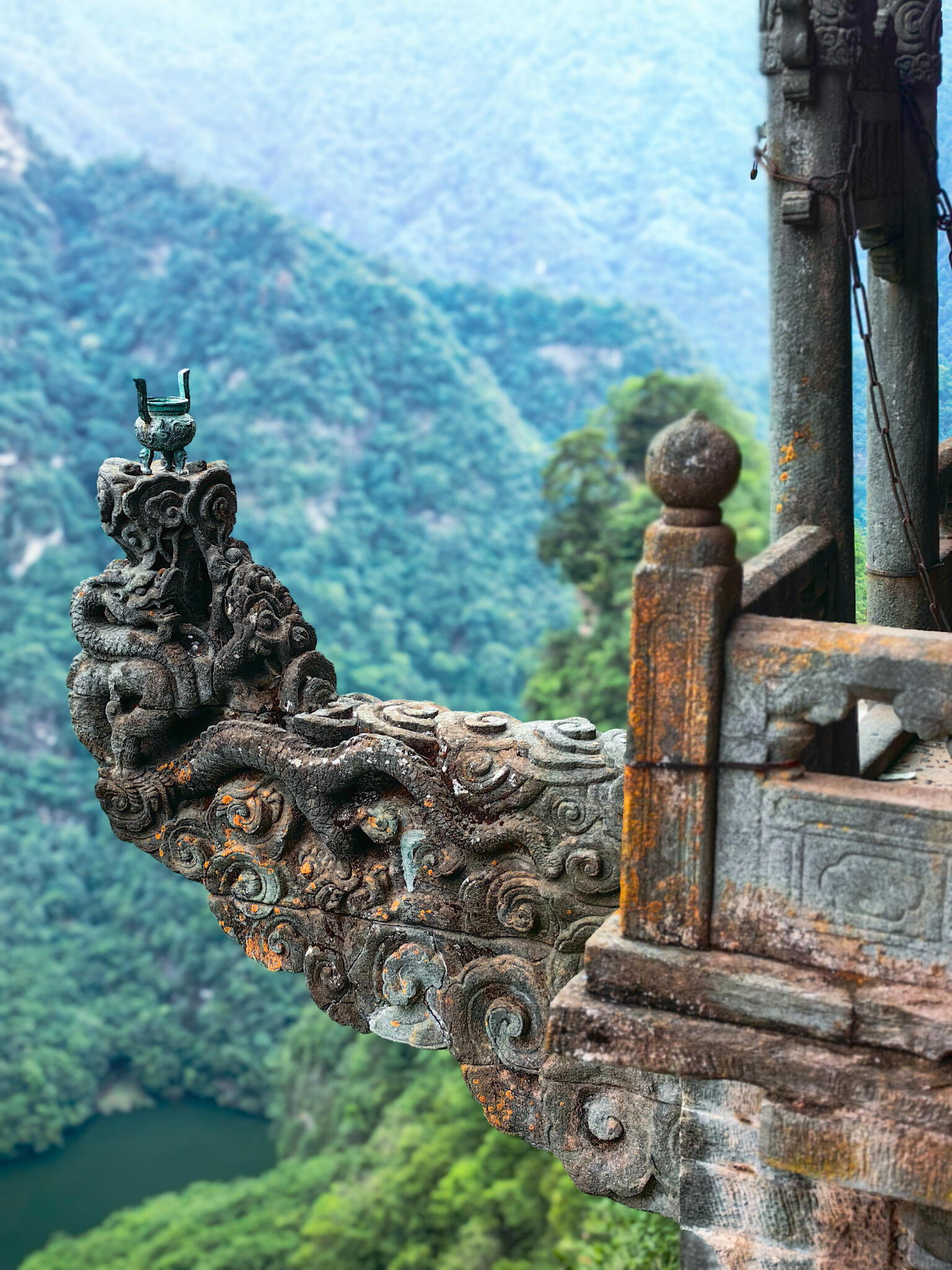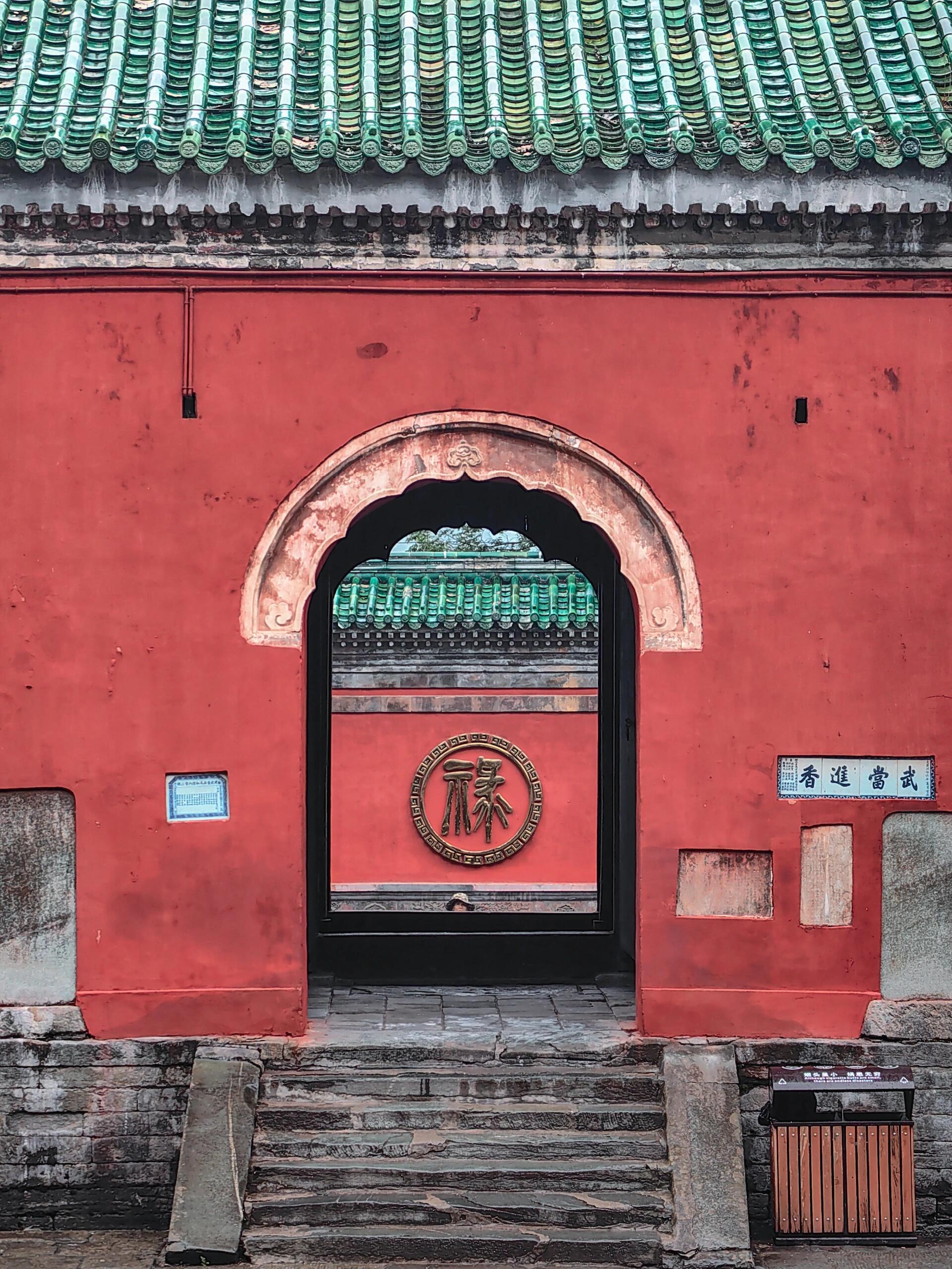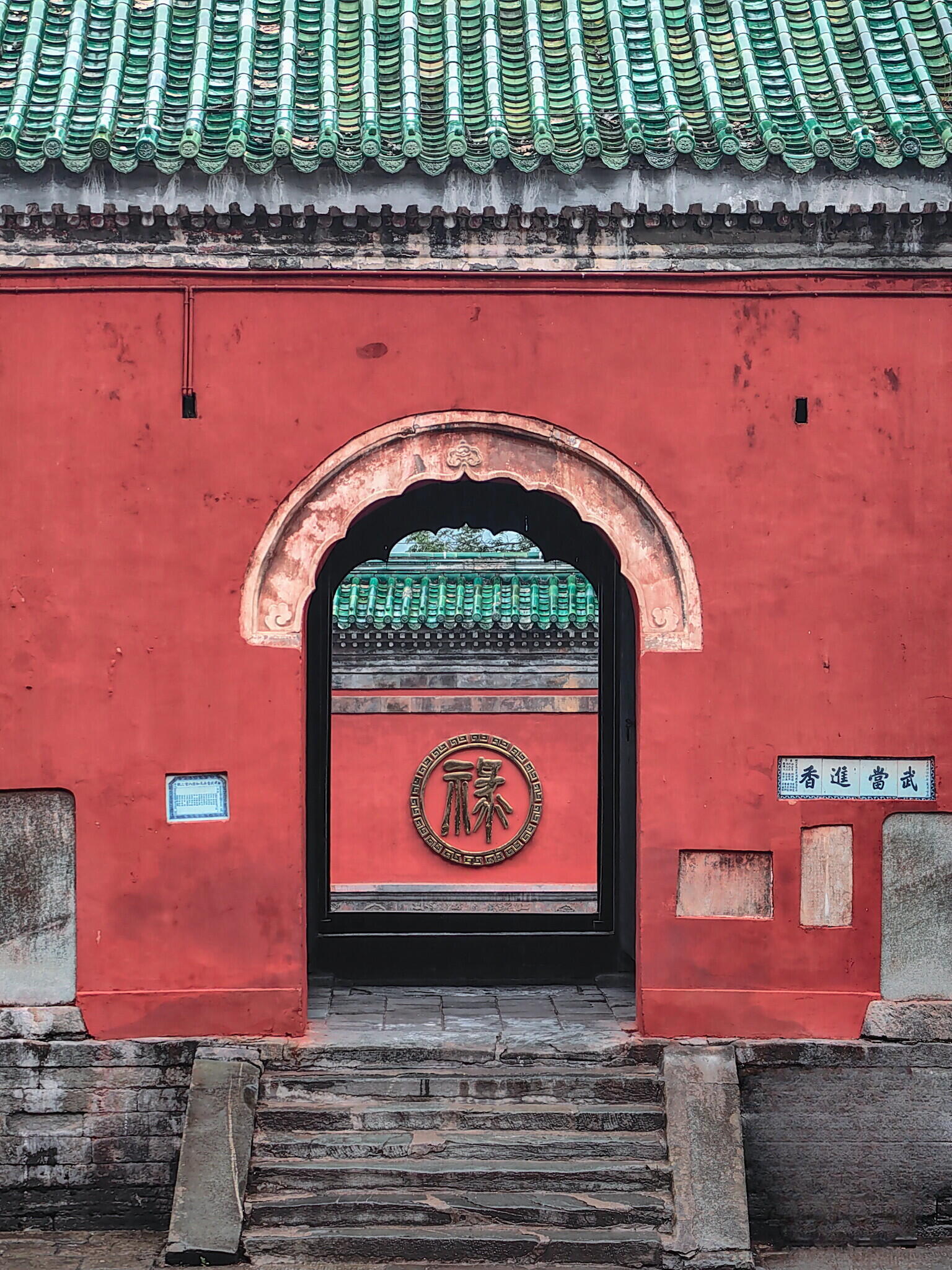 在武当山的诸多景点中,南岩的位置得天独厚。它既不像金顶那般高高在上,让人遥不可及;也不像山脚的建筑那样平凡无奇。站在南岩的观景处,目光所及,是连绵起伏的山脉,层峦叠嶂,郁郁葱葱。远处的山峰在云雾中若隐若现,宛如仙境。而近处的岩石、溪流、林木,与周围的建筑相互映衬,构成了一幅和谐的画面。这里的每一处建筑,都像是被精心安置在峰、峦、坡、崖间的合适位置上,没有丝毫突兀之感。