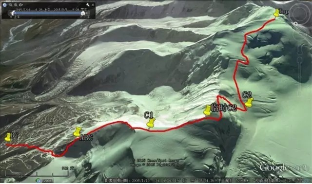 阿尼玛卿山东北山脊路线。图/google earth