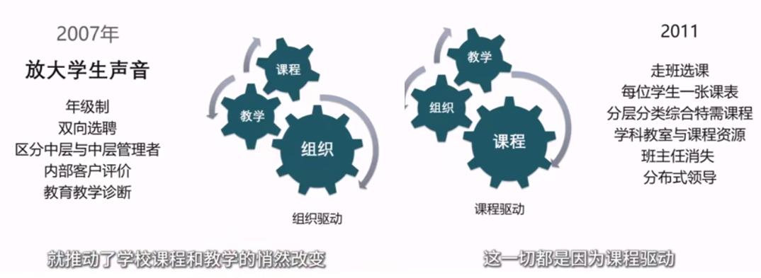 这是北京第十一学校集体努力摸索,探索,逐渐的形成,又不断优化、升级的教育措施(改革)。从2007年开始,近二十年时间,到今天,已经历经组织驱动——课程驱动——教学驱动等三个阶段了。
