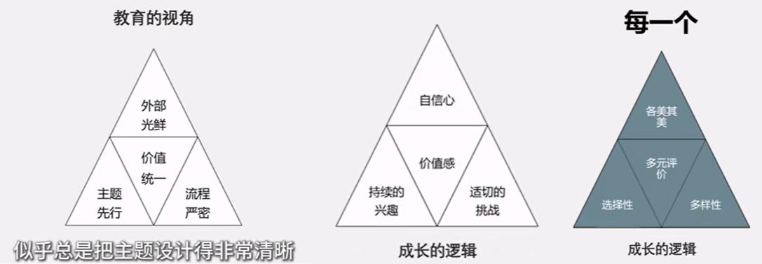 而推动这些教育的变革,核心就是把教育模式从原来的教育的视角转变为成长的逻辑。