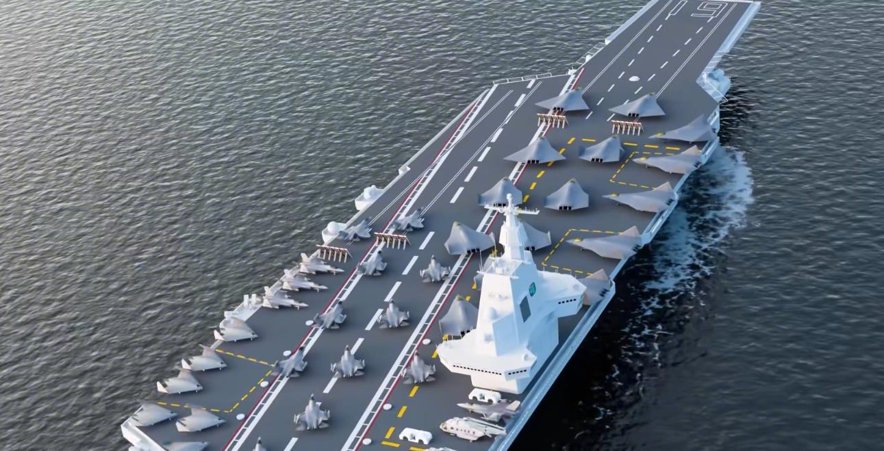 设想下这样的战斗序列:004上24架歼36,24架歼35,再加四五十架无人机,关键时刻一波弹射出去。歼36挂远程空空弹负责夺取制空,一部分直接带鹰击导弹专打对海。战时一小时挺进2000公里,类似“隔墙打牛”,隔着敌方防区齐射高超导弹,打完能全身而退,完全是新时代航母的正确打开方式。