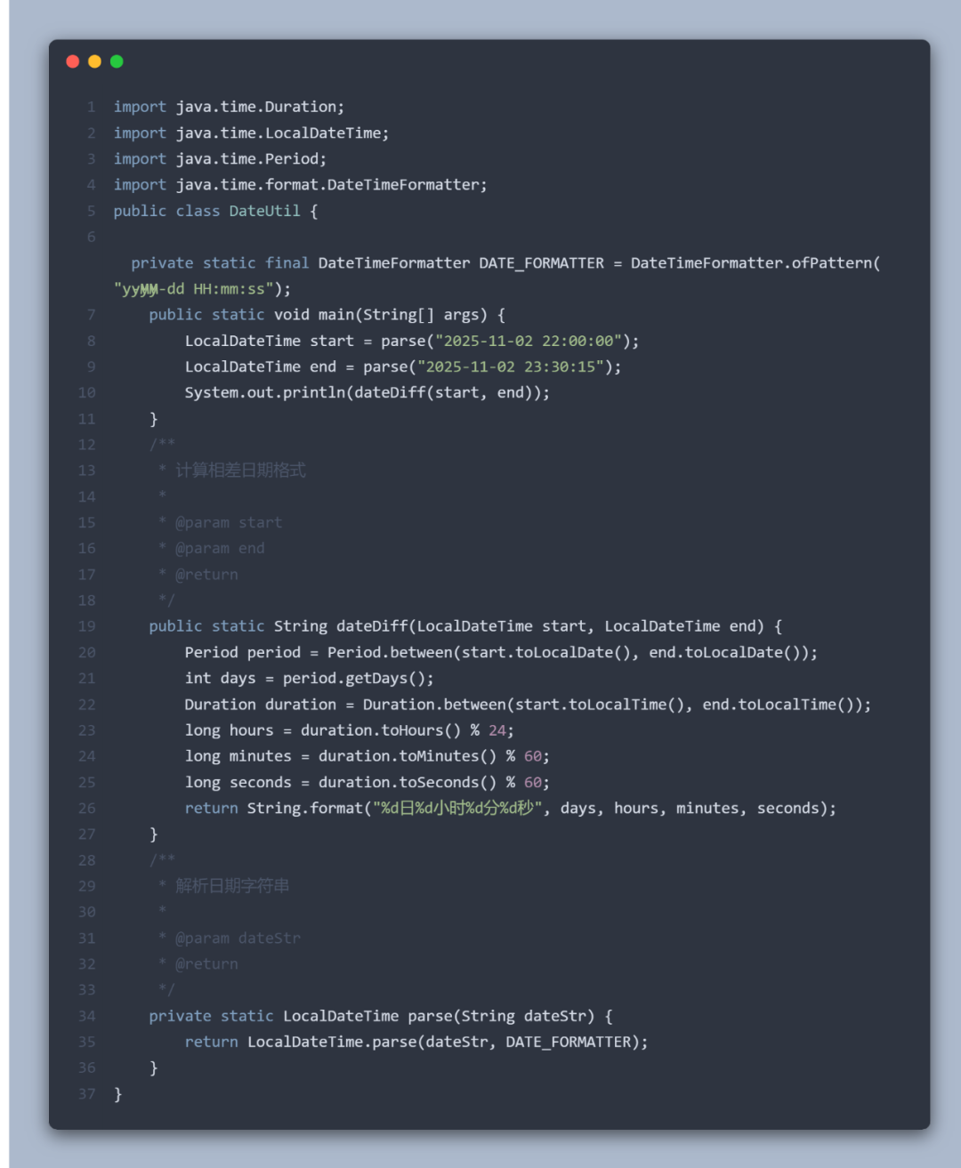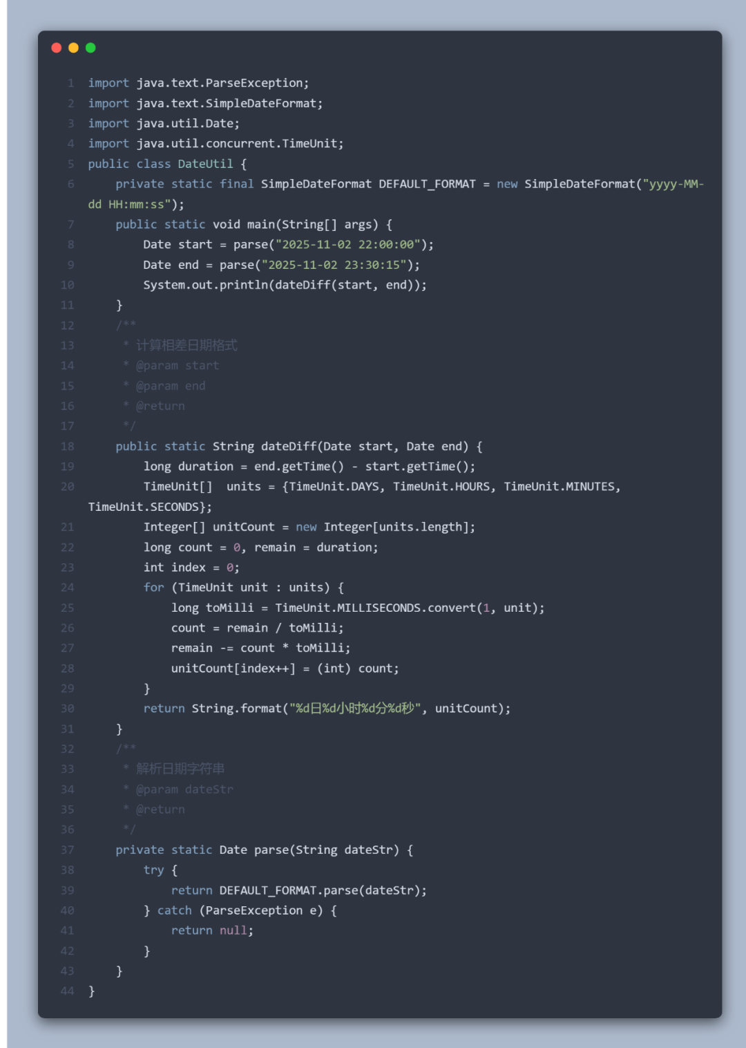 二、基于 Date首先给出基于 Date 计算指定格式时间差的代码: