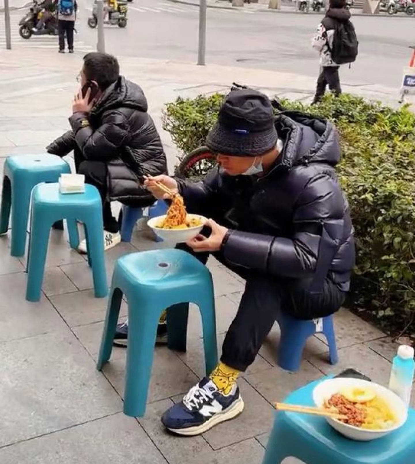而在重庆生活许久的任重,也早已适应了这里的生活。他经常一个人在街边吃面,哪怕是蹲在路边,用塑料凳子当桌子,都能吃的津津有味。