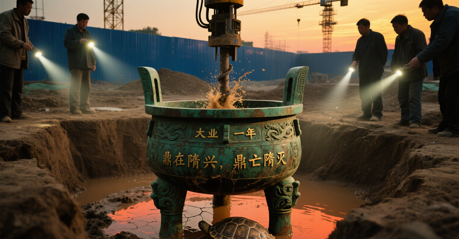 2015年春,洛阳偃师市的一处建筑工地,打桩机意外凿穿地下夯土层。当考古队员清理淤泥时,一方覆满铜锈的巨鼎破土而出。鼎腹篆刻的“大业十一年”铭文,让在场所有人倒吸冷气——这竟是《隋书》记载失踪千年的大业鼎!更诡异的是,鼎内残存的龟甲上,赫然刻着“鼎在隋兴,鼎亡隋灭”八字谶语。