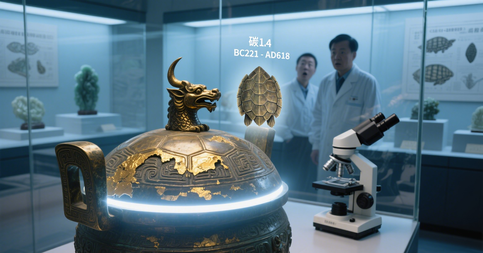 在洛阳大业鼎考古现场,一件鎏金铜鼎盖引发专家热议。鼎盖上的獬豸纹饰,与唐太宗昭陵出土的“独角神兽”玉雕如出一辙,印证了《大唐西域记》中“炀帝遣使西域求神兽”的记载。更令人震惊的是,鼎内残留的龟甲经碳14检测,竟属于《隋书·地理志》记载已灭绝的“洛龟”。