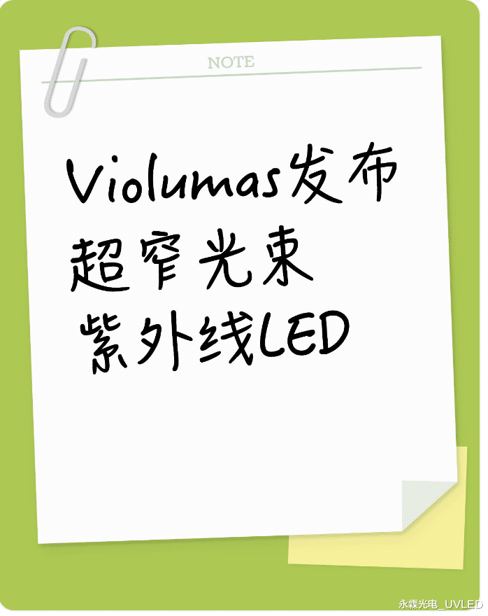 紫外线LED公司Violumas近日宣布推出一款适用于准直、聚焦照明、远距离传输及光纤耦合应用的超窄光束紫外线LED产品。