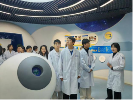 最后一站,同学们来到医院的科普馆。在专业讲解员的引导下,通过图文展板、互动模型、多媒体演示等丰富形式,系统学习了眼解剖结构、常见眼病成因、科学护眼知识及眼视光行业发展历程。从眼球模型的精细拆解到近视防控的前沿理念,从古代护眼智慧到现代诊疗技术的迭代,科普馆内的每一处细节不仅大家深化了对眼健康知识的认知,更直观感受到行业发展的厚重与创新活力,为后续临床实践积累了扎实的知识储备。