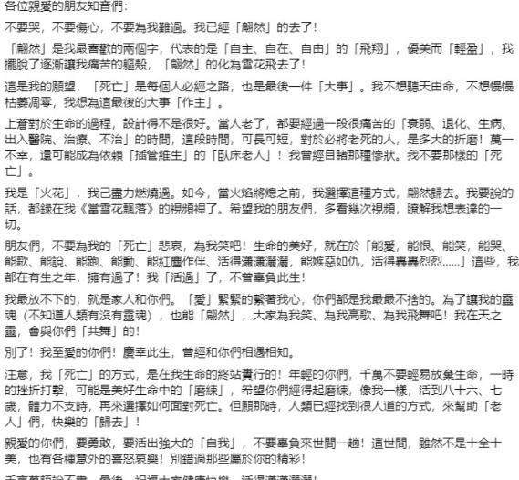 信源:2024-12-04 16:54·光明网——台湾知名作家琼瑶轻生身亡,终年86岁……遗书公布→