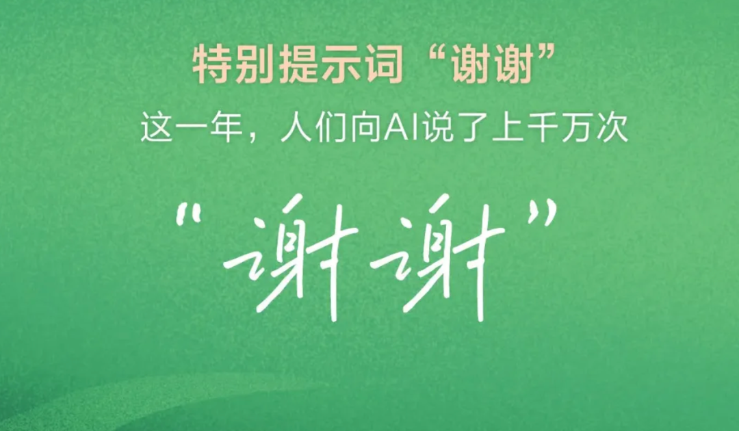 2024年底,百度发布的AI提示词数据显示,“谢谢”成为当年文心一言App用户与AI互动中最常出现的词汇之一。仅这一年,人们就向AI说出了上千万次“谢谢”。