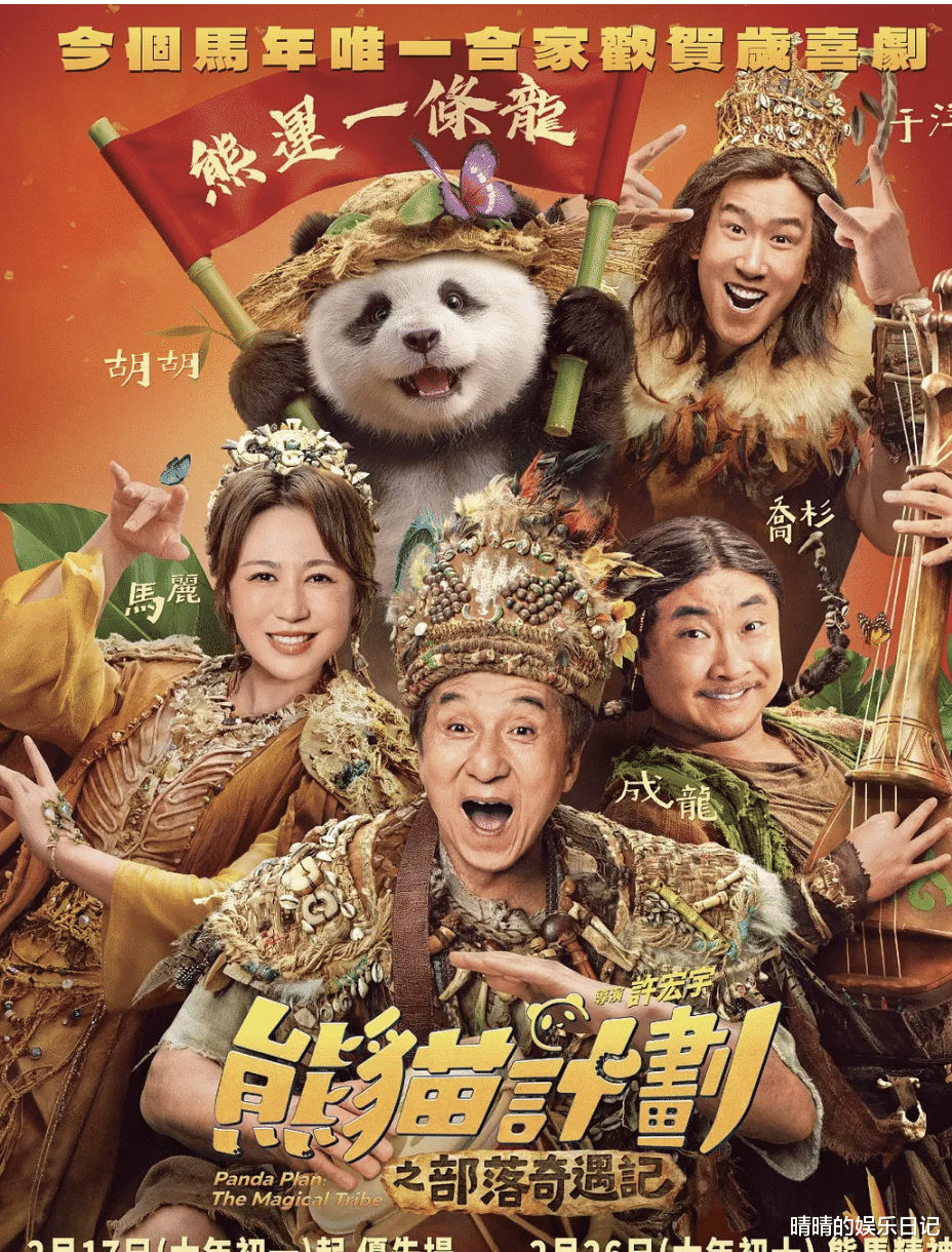 更重要的是,许宏宇把“网感”注入了传统的成龙式动作喜剧。部落场景色彩斑斓,动作设计花哨但不血腥,老人看热闹,孩子看熊猫,年轻人看梗,三赢局面。