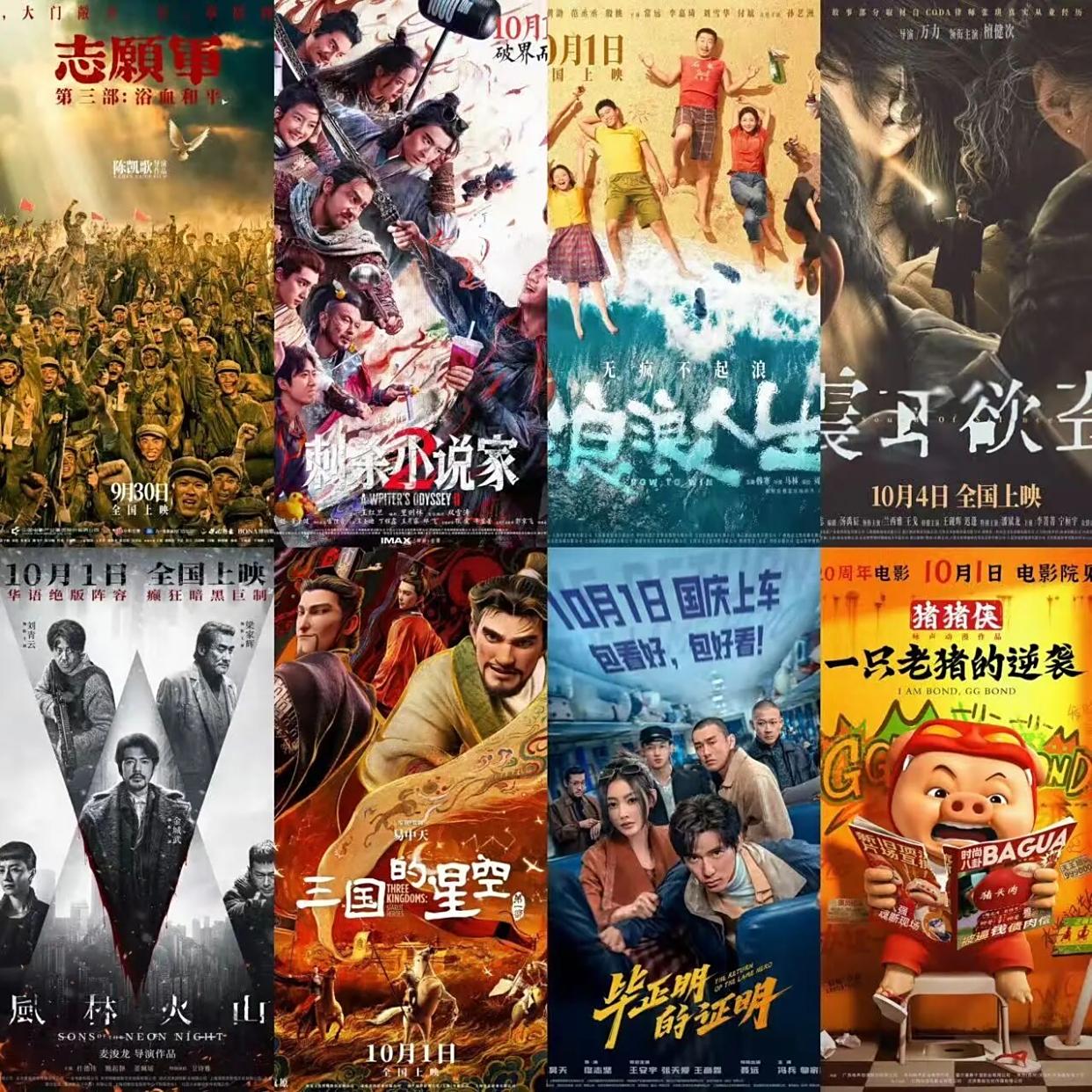 2025年国庆节的电影现已相继确定档期并开始预售,到目前为止共有12部作品安排在此期间推出,它们包括:9月30日亮相的《志愿军:浴血和平》与《浪浪人生》,10月1日登场的《刺杀小说家2》、《风林火山》、《熊猫计划2》、《毕正明的证明》、《猪猪侠·一只老猪的逆袭》、《三国的星空第一部》以及《红孩儿火焰山之王》,10月4日上映的《极限城市》、《震耳欲聋》还有10月6日推出的《疯狂电脑城》。