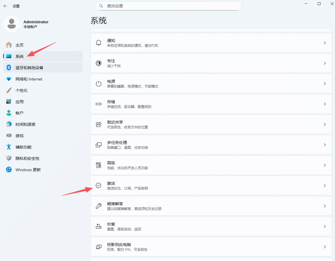 依次点击开始→设置→系统→激活。老田电脑是Windows11,以下是Windows11的界面。