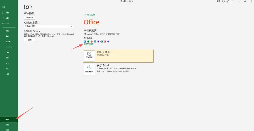 之后,依次点击文件→账户,就可以看到激活状态。