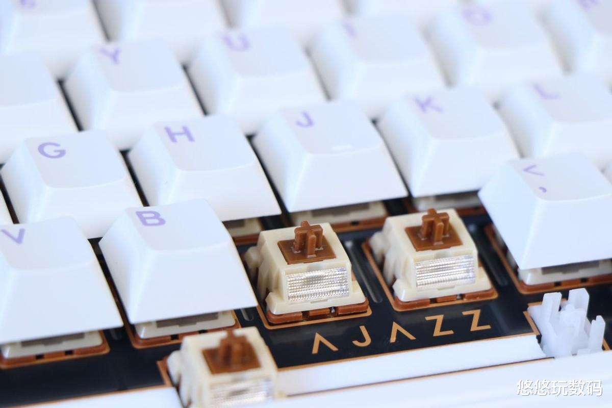 黑爵AK980有风信子、美拉德轴、礼物轴V2、青云轴和TTC烈焰红轴V2可供用户选择,我买的是美拉德轴,属于重压力短触发的轴体,这个轴体更接近于茶轴,按压有段落感但又不那么硬,无论游戏还是打字都很自然舒适。