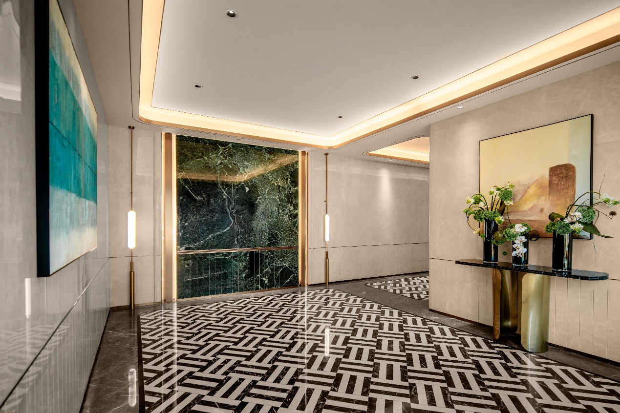 从现代轻奢设计风格的酒店式社区大门,到东方立体园林景观,再到温暖精致的“城市会客厅” 架空层,再到运用大量石材、尽显雅奢气质的入户大堂,以及配备花岗岩坡道、璀璨星空顶与水磨石行车道的车库等等,所有细节皆可亲眼见证。