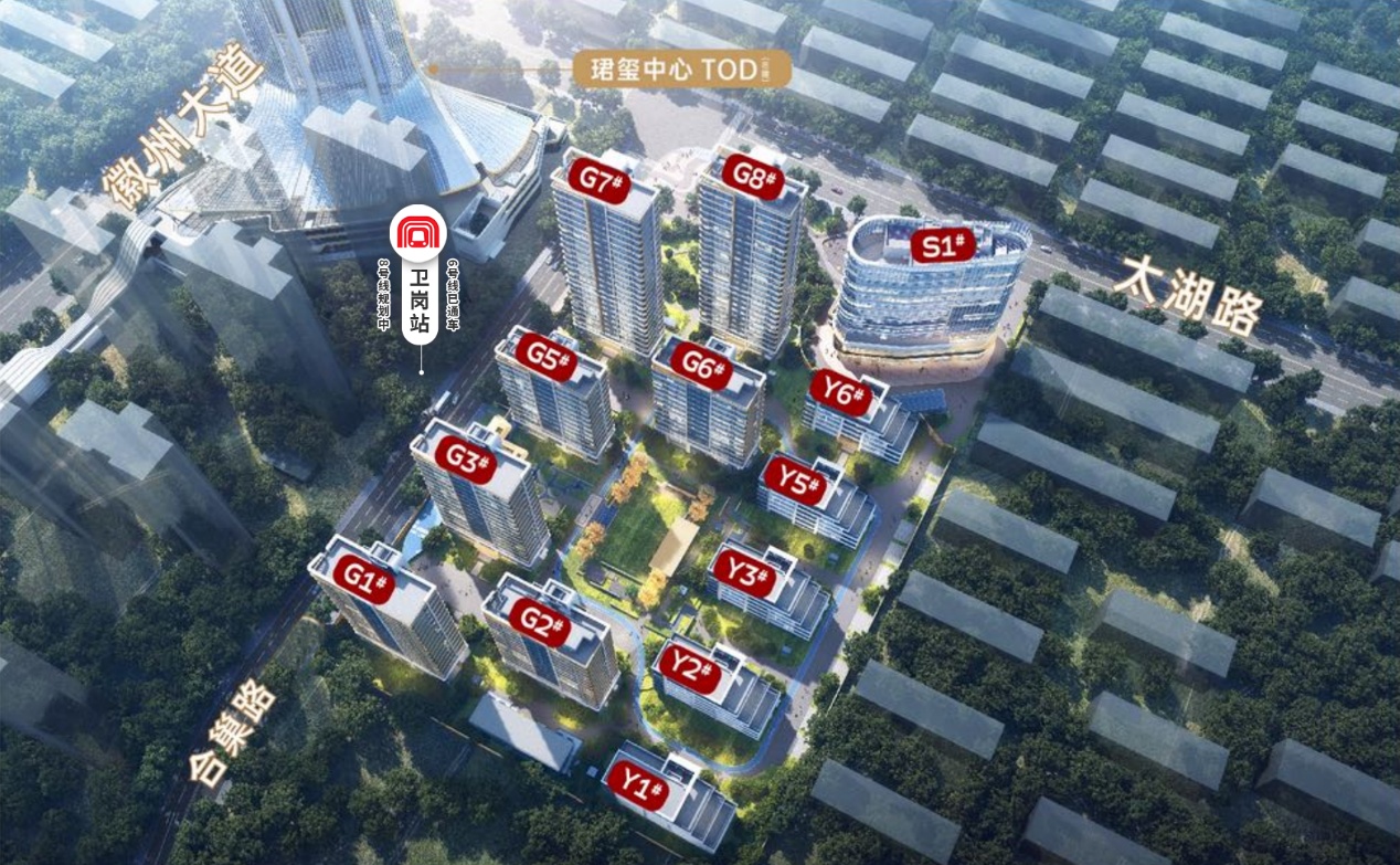 与地铁6号线(已开通)&地铁8号线(规划)卫岗站,以及TOD商业中心隔路相望,新加推的珺玺中心一期G1栋,也因此开盘即热销,销售额超4360万元。